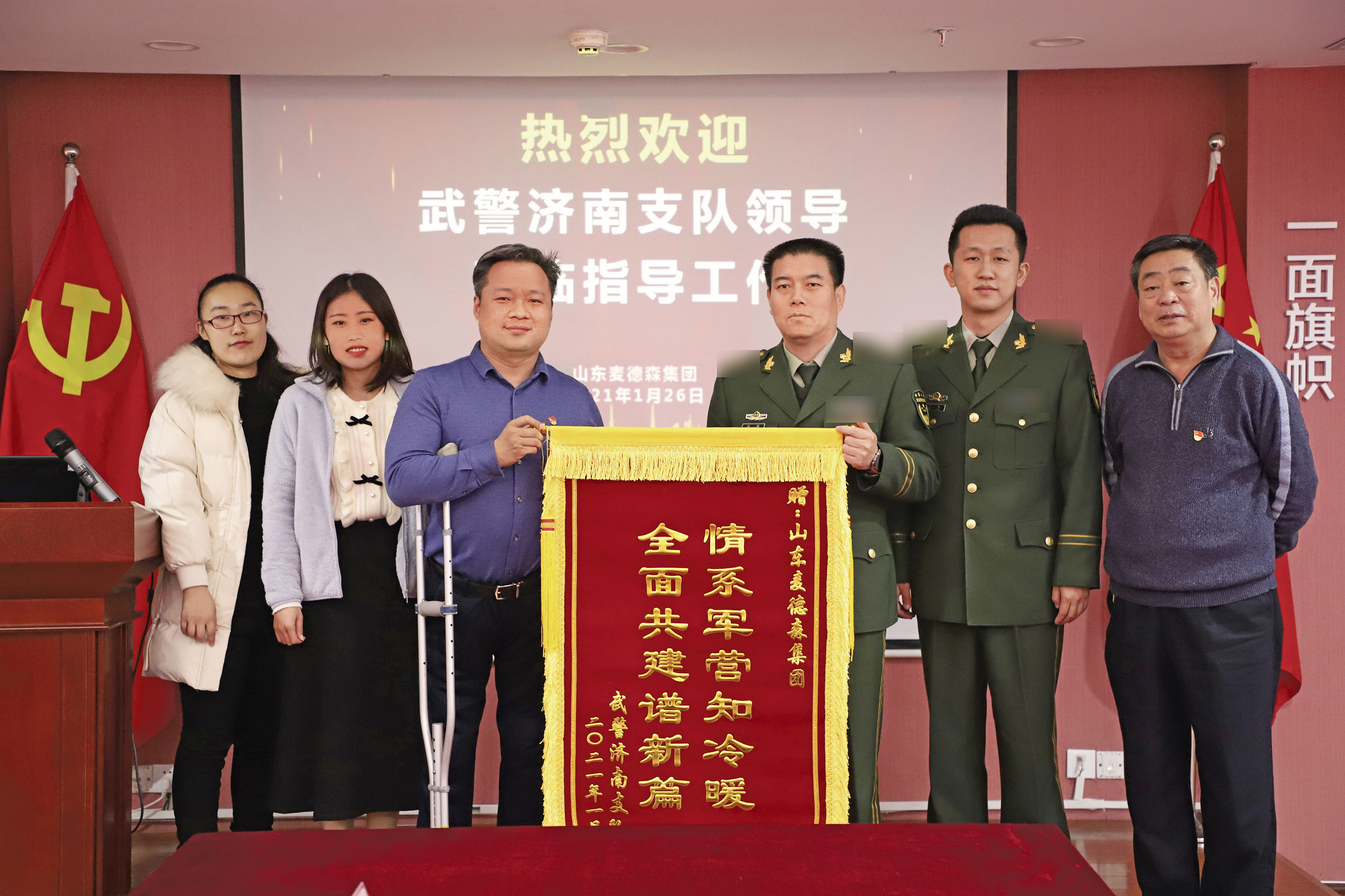武警济南支队领导莅临麦德森考察并赠送锦旗