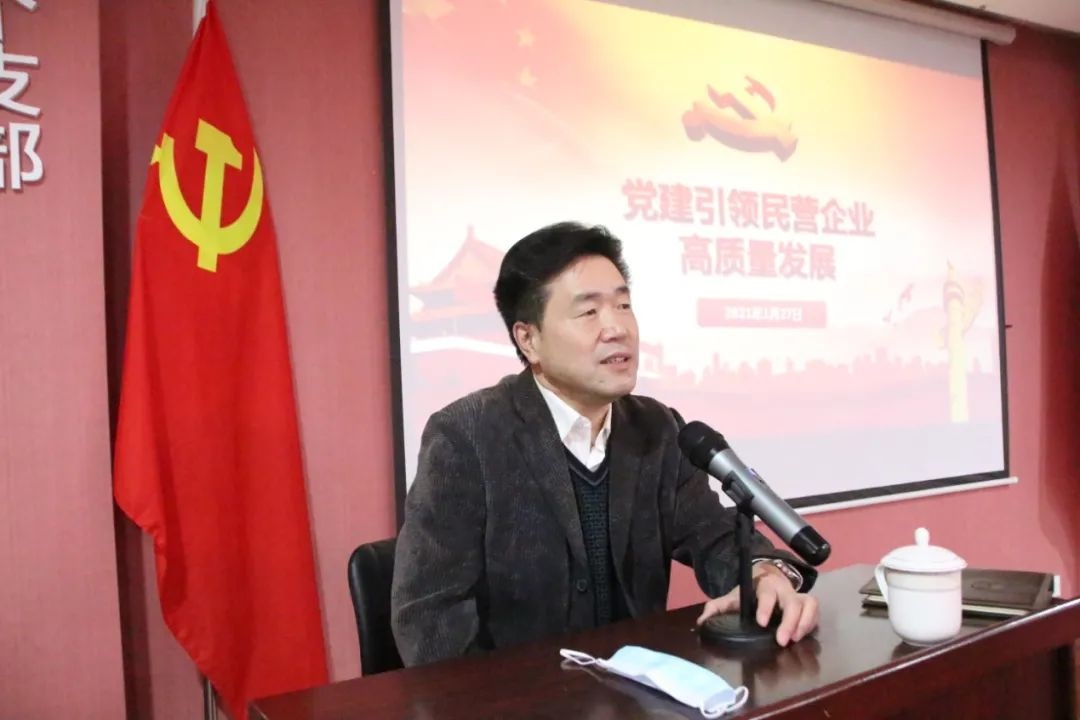 1月27日,在全面落实疫情常态化防控的各项要求基础上,集团党支部在党群活动室组织开展了《党建如何引领企业高质量发展》宣讲活动,特邀山东省市场监督管理局副局长郭之祥担任主讲,集团党支部书记王勇、副书记桑守正、支部全体党员、党员突击队全体队员聆听宣讲。