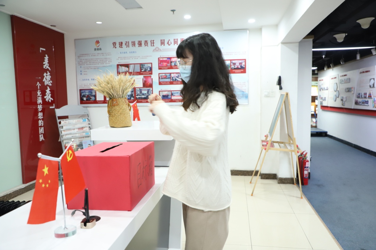 集团三个团支部的团员们踊跃参加活动,纷纷将装有写着自己“2021年目标”的信封投入目标箱中。根据活动安排,在6月的“目标箱”开放日,团员们可向团委申请取出自己的目标信封,进行内容补充并重新放回;12月底,团委将统一开箱,下发全部“2021年目标”信封供团员们复盘自己目标的完成情况。
