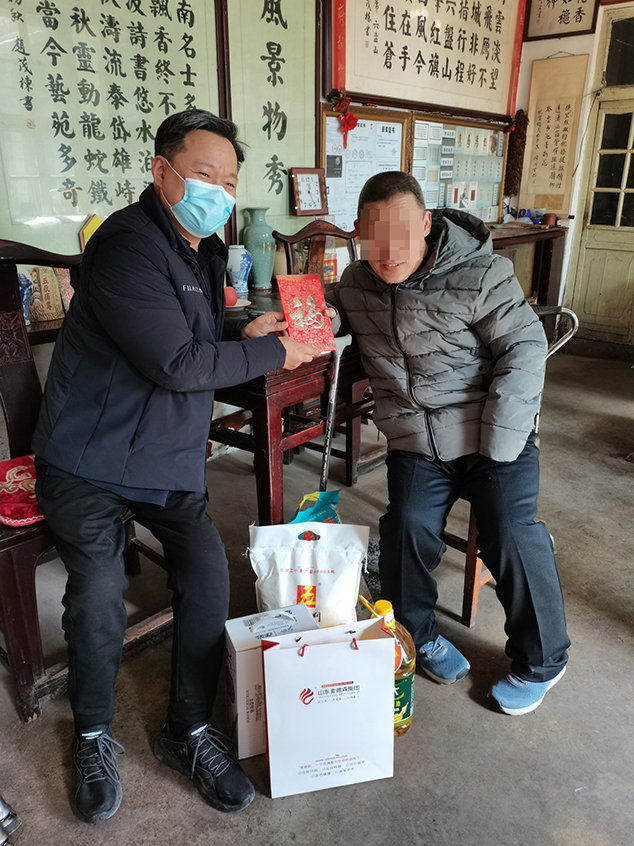 走访慰问过程中,每到一户,王勇书记都会详细询问残疾同胞的身体状况及贫困家庭的生活情况,与大家深入交流,向大家致以新春问候,为他们送上大米、食用油、牛奶等慰问品和慰问金。王勇书记表示,麦德森将不遗余力帮助解决残疾人和贫困家庭面临的困难,积极承担企业社会责任。