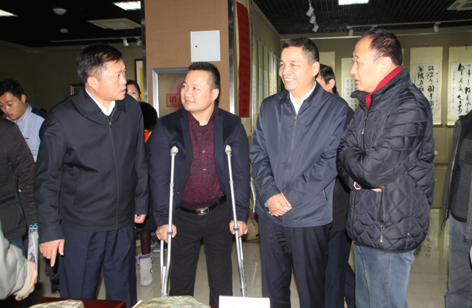 济南市残疾人文联成立揭牌仪式结束后,由王勇董事长陪同领导参观本次展览并现场讲解。展览共有包括山东省工艺美术大师阎铁鲁、中国书画家协会理事姚乐光、职业画家王少毅、中国作协中国诗歌学会会员韩振广、中国国画院山水画研究室副主任郭秀军在内的百余名残疾人参加,收集文学、书法、美术(国画、漫画、油画等)、摄影、民间艺术(剪纸、扎染、石雕、叶脉画、葫芦等)等5类260余件文化艺术作品。