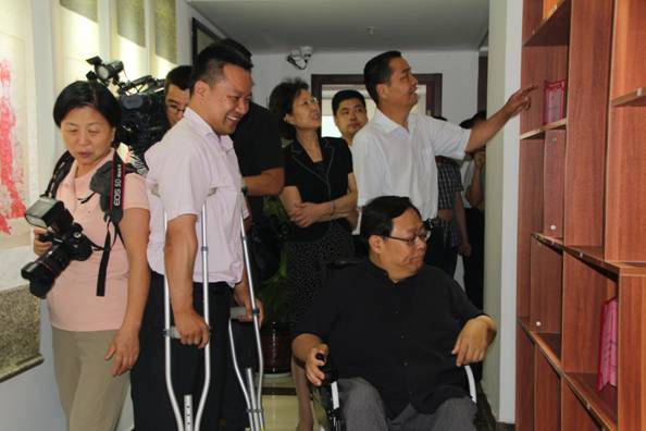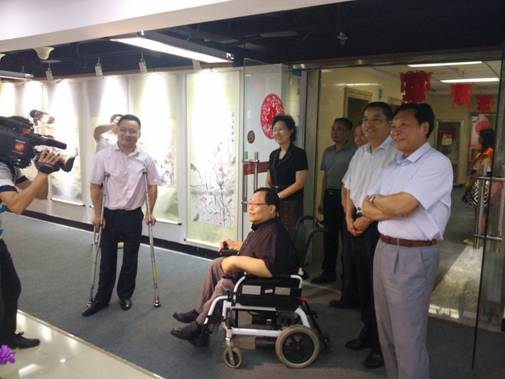 在各级残联领导以及我集团董事长王勇的陪同下,吕世明副主席莅临我集团考察调研。经过王勇董事长的解说,吕世明副主席对我集团的企业文化有了深层次的理解,给予了极大的赞赏。在王勇董事长的引导和介绍下,吕副主席参观了励志文化长廊,对文化长廊的建设提供了指导性的建议,并对王董事长积极为残疾人艺术工艺品提供展销平台及就业机会表示赞扬,希望可以建设越来越多类似的平台,为更多残疾人谋取更大福利。随后,王勇董事长陪同吕世明副主席参观了我集团的办公环境,吕世明副主席同我集团的残疾人员工进行了亲切交谈。