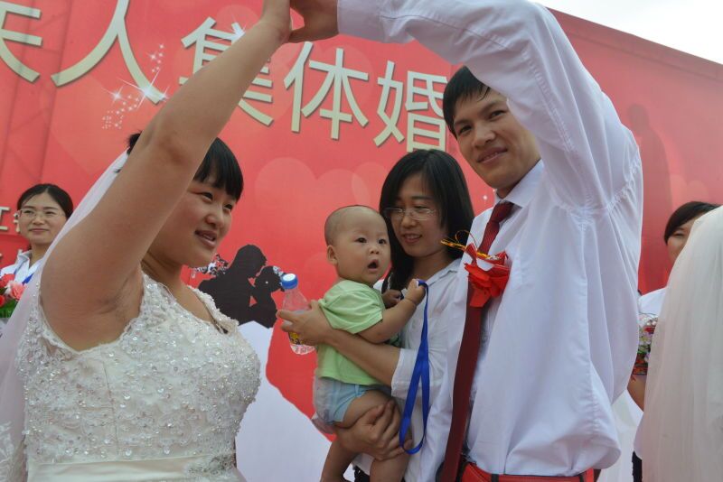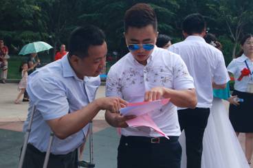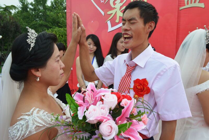 在中华传统节日“七夕节”这个浪漫而温馨的节日,各位领导与市民共同见证了13对新人的爱情。这13对新人分别有视力、肢体、听力等类别不同程度的残疾,但是每一对新人脸上都洋溢着幸福的笑容,其中一对新人更是带来了甜美爱情的最好证明——10个月大的宝宝。