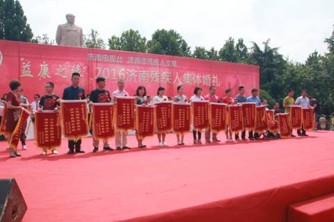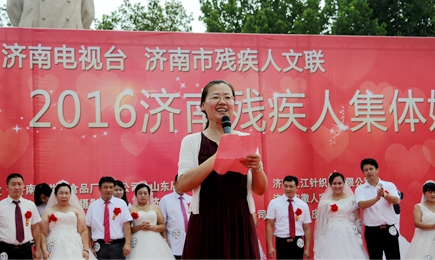 济南市残联副巡视员刘红卫女士为13对残疾人新人主婚
