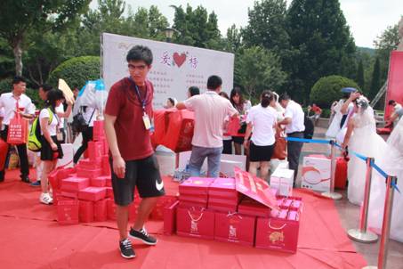 婚礼接近尾声,各位出席领导向赞助单位颁发锦旗,随后为新人发送爱心企业赞助的礼品。正是这些赞助单位对残疾人公益活动的支持与厚爱,才成就了这一场令人为之动容的盛大婚礼,才让这一对对令人羡慕的爱侣走进婚姻的殿堂。在今后的公益活动中,一定会有越来越多的爱心人士、爱心企业一如既往地支持。