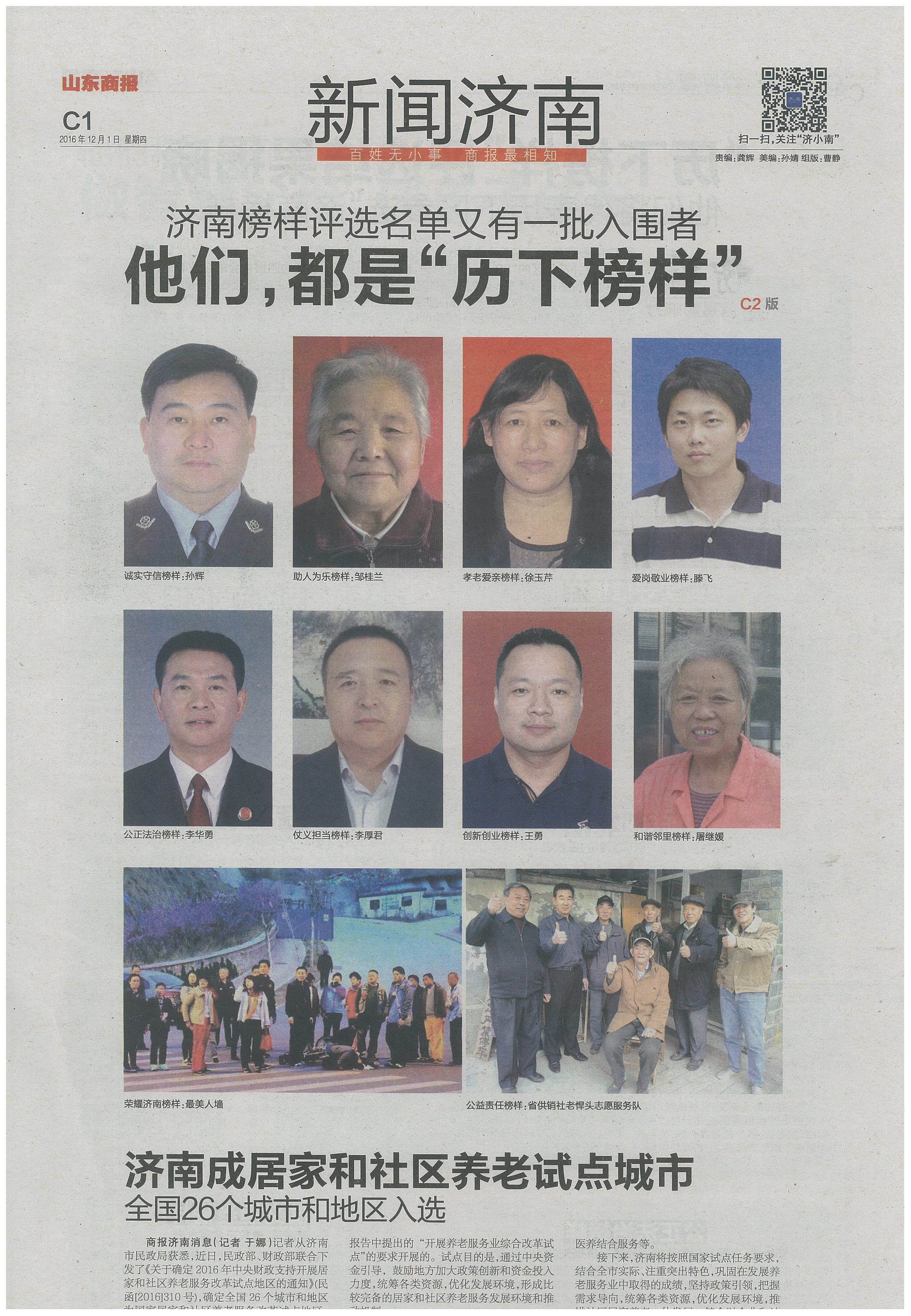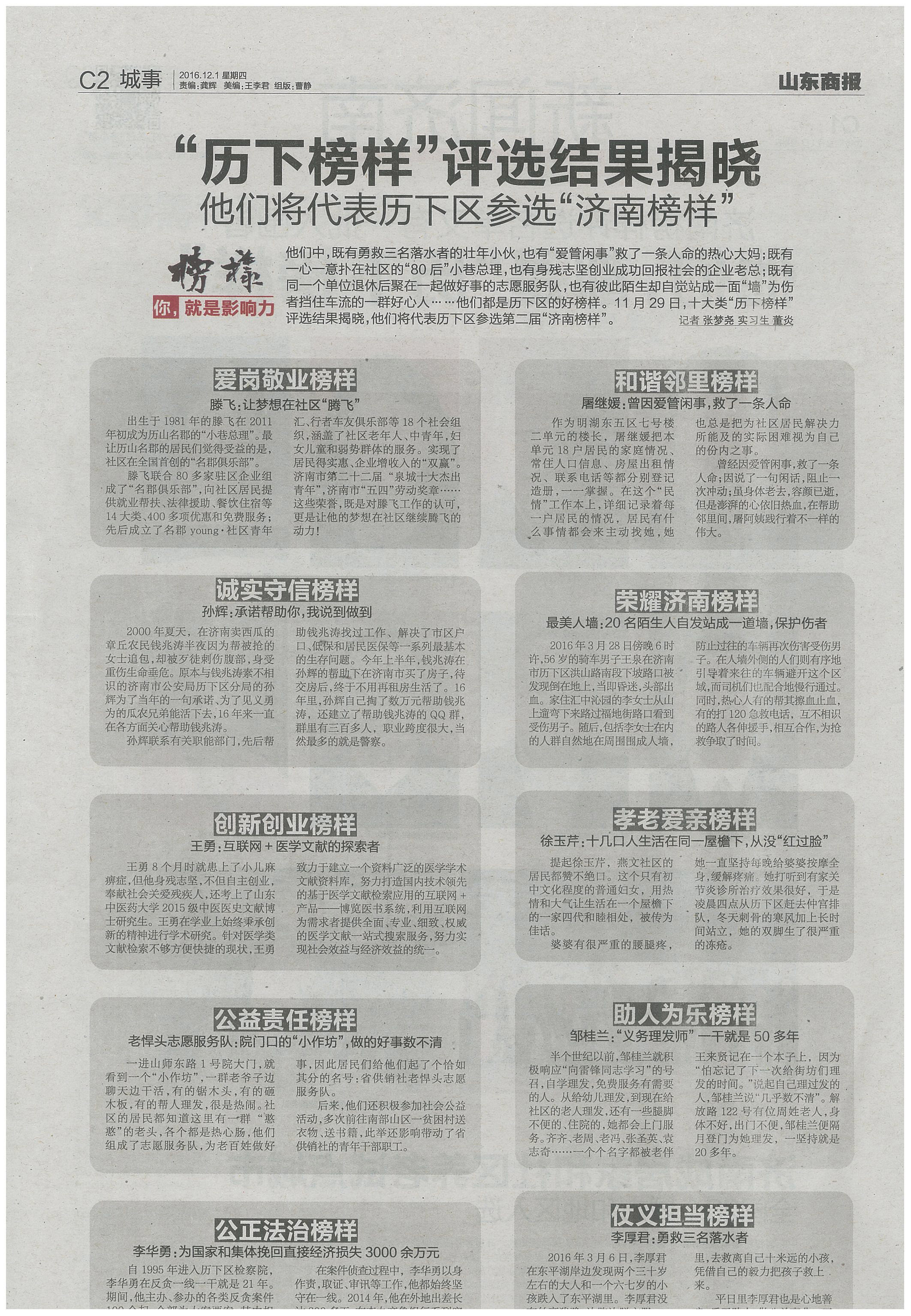 2016年11月29日,十大类“历下榜样”评选结果揭晓,飞极速在线董事长王勇荣获“历下榜样·创新创业榜样”称号,并将代表历下区参选第二届“济南榜样”。