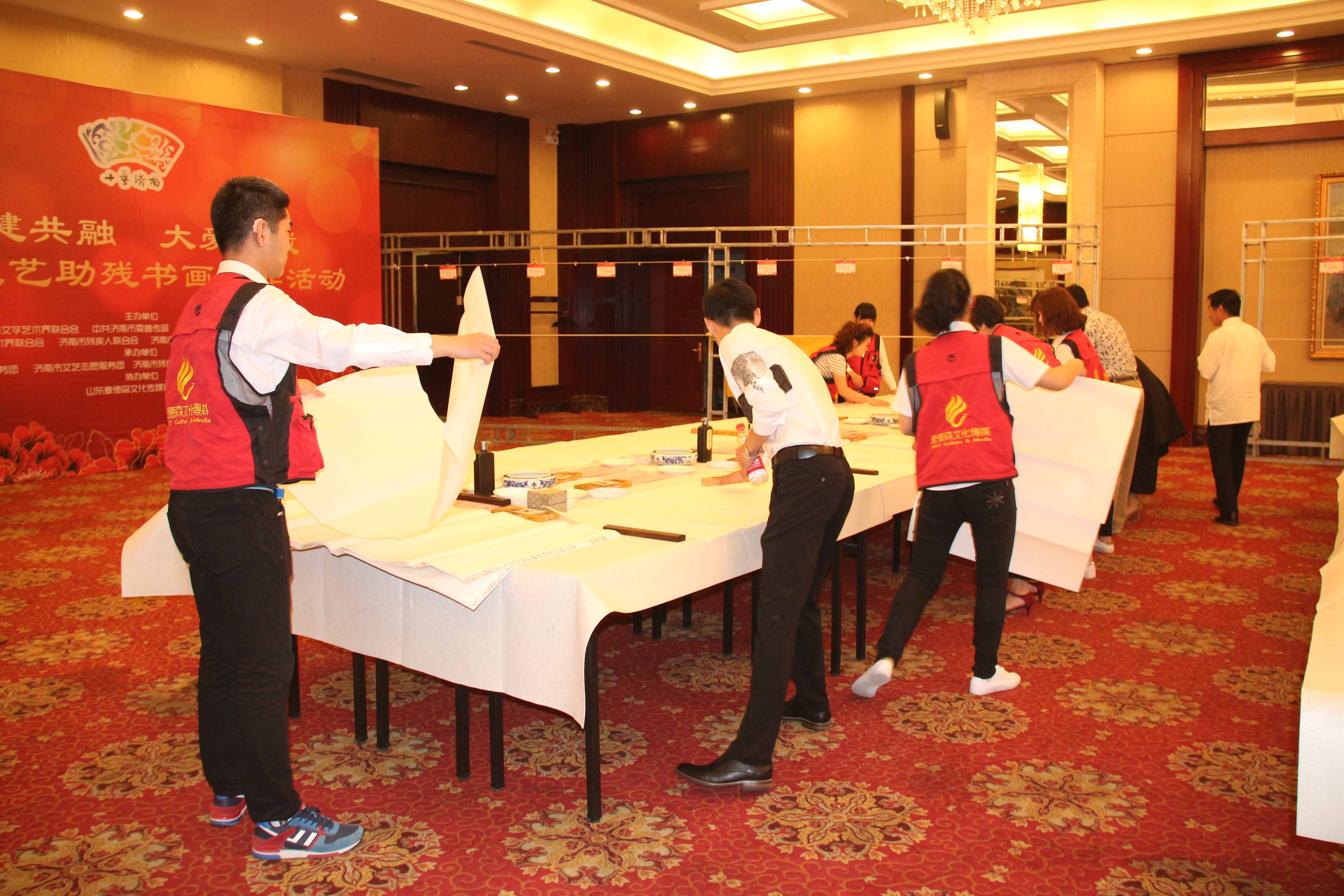 活动当日,省、市、区文联统一选派张宜等24名德艺双馨的书画家,精心创作了50余幅精品力作,并现场展示、捐赠。爱心企业家慷慨解囊,认领善款达20万元,款项全部用于残疾人文艺事业发展。济南市文联党组书记、副主席刘溪为文艺志愿者颁发了荣誉证书。济南市残联党组书记、理事长孙君涛为5位有一定文艺专长的优秀残疾人会员颁发了文艺创作扶持资金。活动中还启动组建了济南市残疾人文艺志愿服务团,并举行了授旗仪式。济南市残疾人文联主席王勇致欢迎辞,残疾人代表钟倩发言并宣读了“创建文明城市 争做文明市民”倡议书。