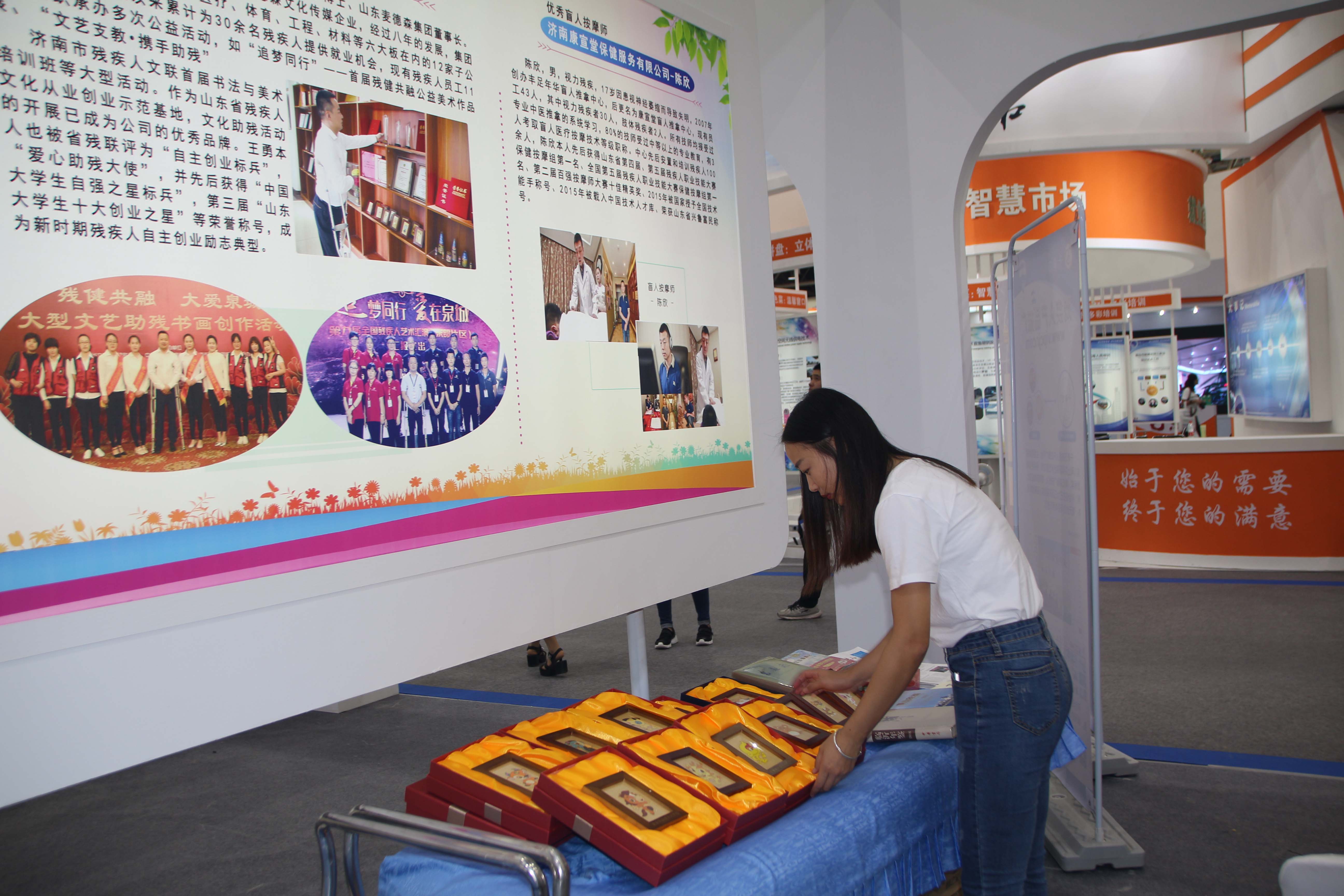 在山东省残疾人联合会展区,我集团作为山东省残疾人文化从业创业示范基地,展出医学科普类书籍、童书、地方志以及残疾人艺术品等展品。