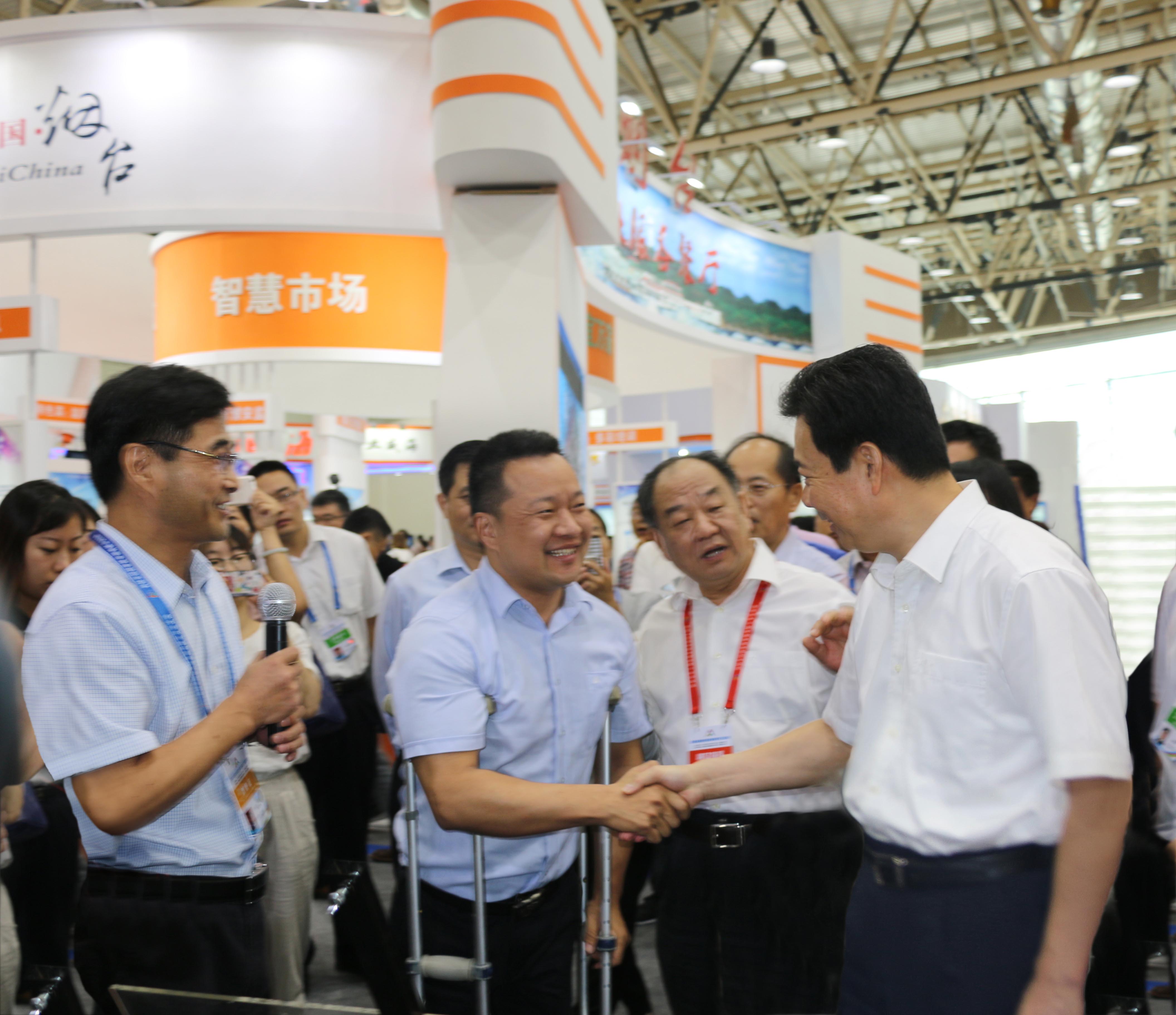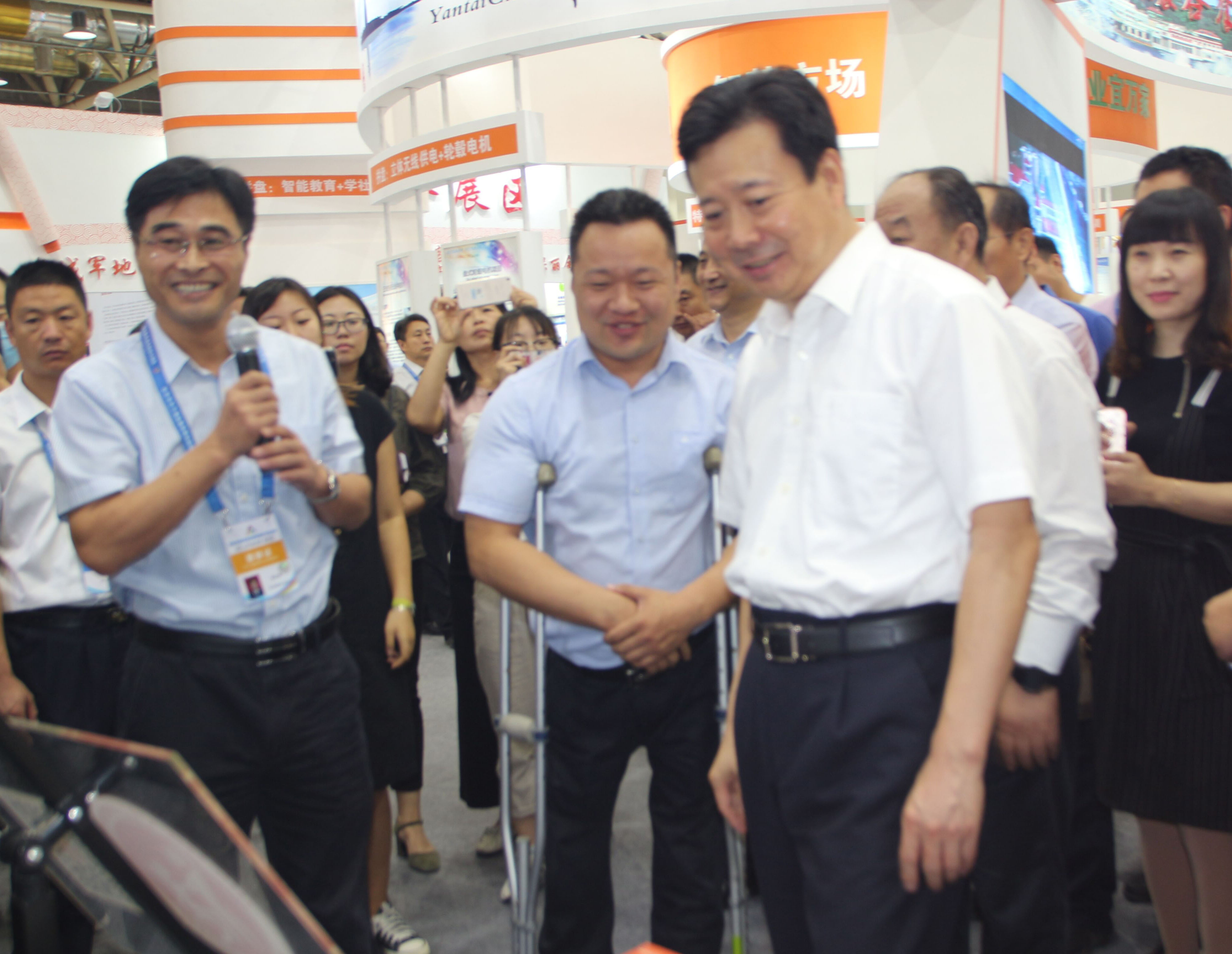 李群副省长在参观省残联展区期间,与我集团董事长王勇等几位优秀残疾人创业者进行了亲切沟通,并认真听取了创业者们对产品的讲解。