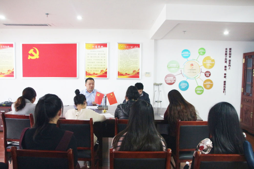 在传达学习党的十九大精神后,杨部长围绕党章、围绕国家面临的形势谈论了如何将党建融入企业、融入个人,并结合自己工作实践教大家在这个习近平总书记引领的新时代作为一名共产党员该学什么,怎样去学。杨部长强调作为党员,一定要学习党章党规、做合格党员,要多读些关于企业理念和人文素养的书籍;作为一名党员要带着问题有导向的学,在工作任务中学,在工作之余学,在实践之余学;在学习后要结合公司给的任务去做,有创新性的去做,要把任务精细化、精准化。
