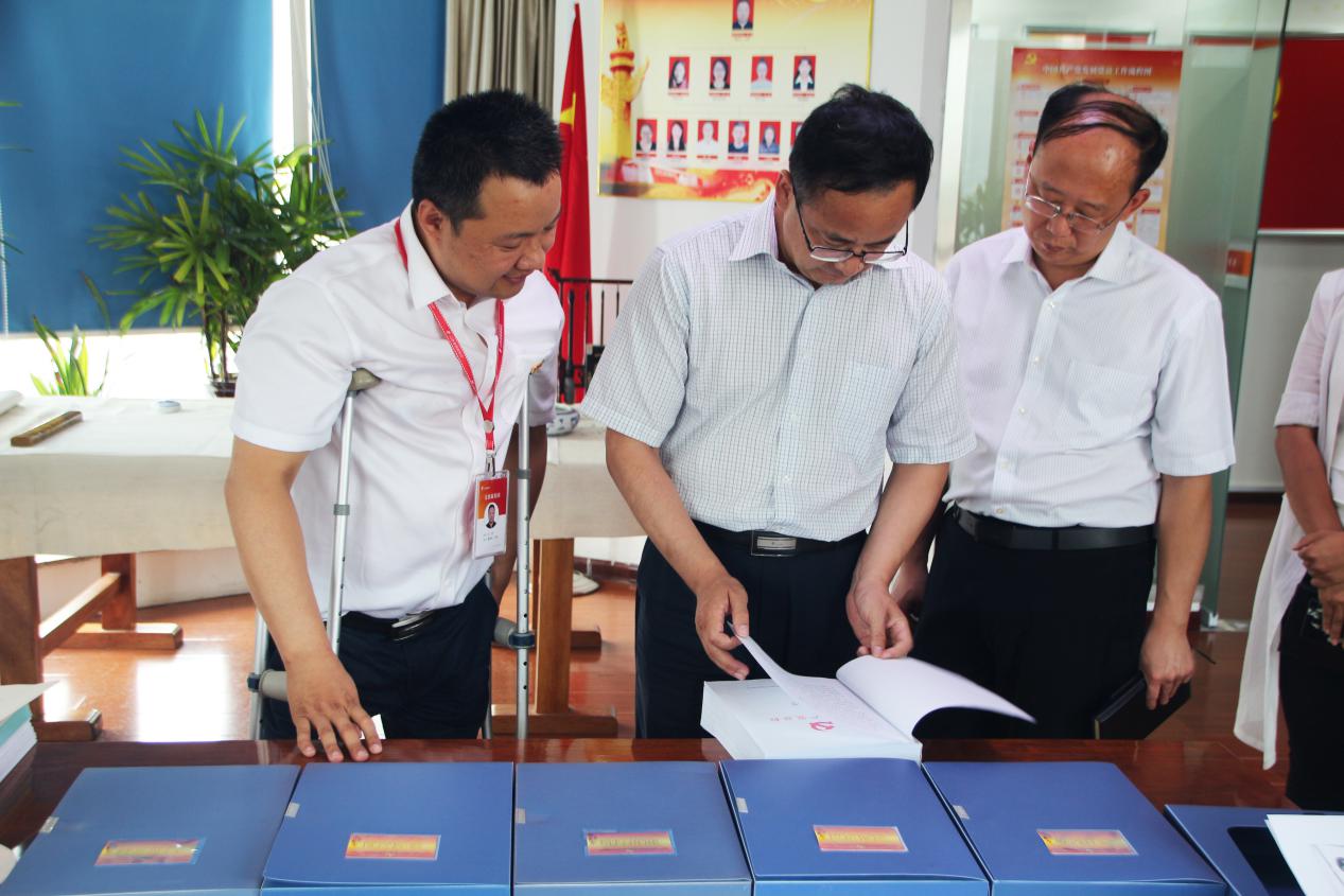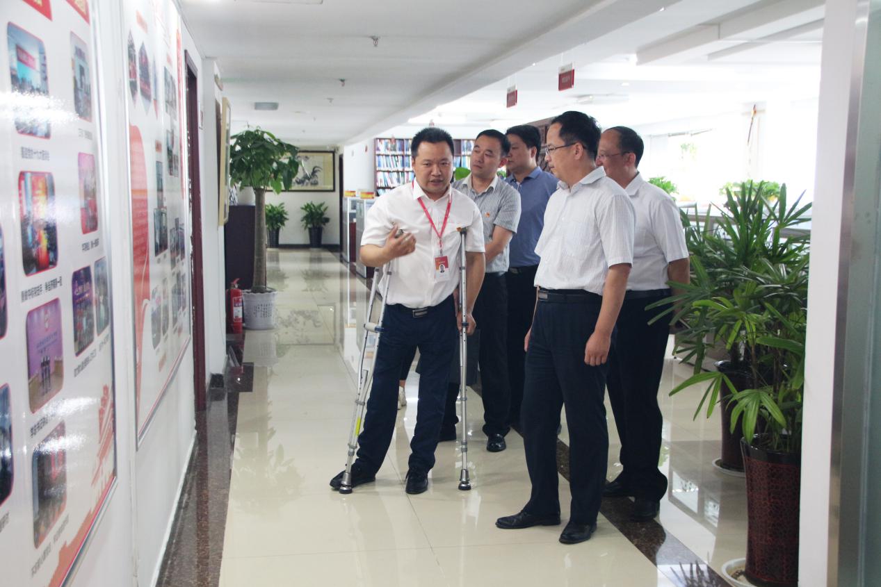 在王勇董事长的陪同下,续明部长一行参观了集团公司残疾人文化艺术长廊、多功能活动室以及各职能部门工作情况,对我集团党建、工会工作和企业文化建设进行深入了解。在党员活动室中,续明部长仔细查看了我集团公司党支部的各项活动材料,并给予了充分肯定。