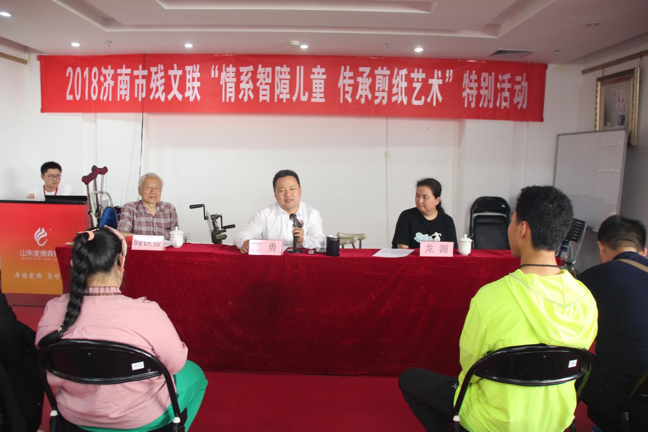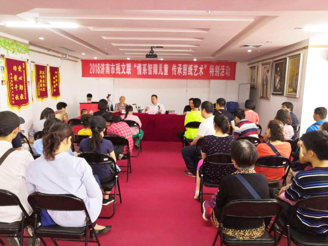 为进一步推进文艺助残工作,丰富残疾人精神文化生活,让智障儿童在和谐的社会氛围中感受到社会关爱和文化魅力。5月26日,由济南市残疾人文学艺术界联合会主办的“情系智障儿童 传承剪纸艺术”特别活动,在飞极速在线多功能活动室拉开帷幕,市残联主席团副主席、市残文联主席王勇,市残文联民间艺术协会主席阎铁鲁等艺术家出席此次活动。