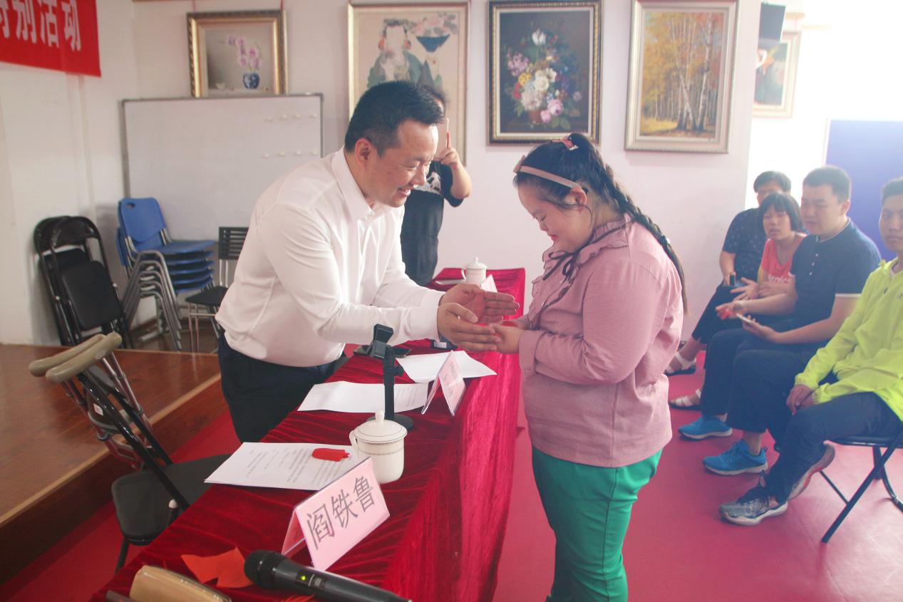 从剪纸的初级刻法到之后的实践运用,阎铁鲁老师一一进行了讲解和示范,在同学们钦佩和期待的眼神中,一幅幅栩栩如生的剪纸作品呈现在了大家眼前。随后,阎老师还来到了同学们中间,更近距离的教大家剪纸,并将剪成的作品送给了在座的同学们,希望他们在今后生活中获得更大的进步。热情的气氛烘托之下,几位智障朋友还上台展现了各自的才艺,赢得了大家热烈的掌声。