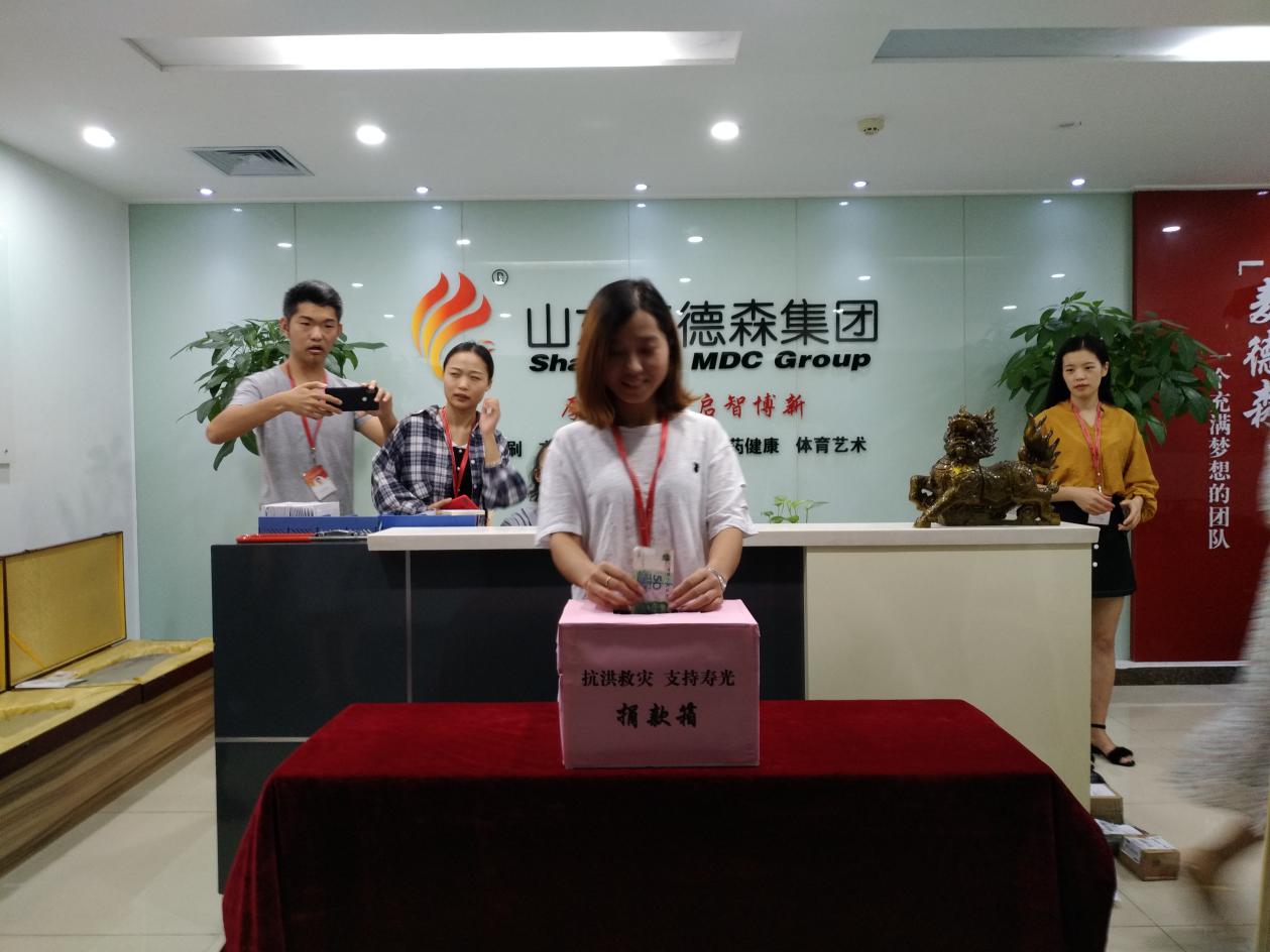 为积极参与到抗洪救灾的工作当中,帮助受灾同胞战胜灾难,渡过难关,中共山东麦德森文化传媒有限公司(集团)支部委员会、山东麦德森文化传媒有限公司(集团)工会联合举办“抗洪救灾,支持寿光”爱心募捐活动,我集团党员、积极分子以及众多员工都积极参与。