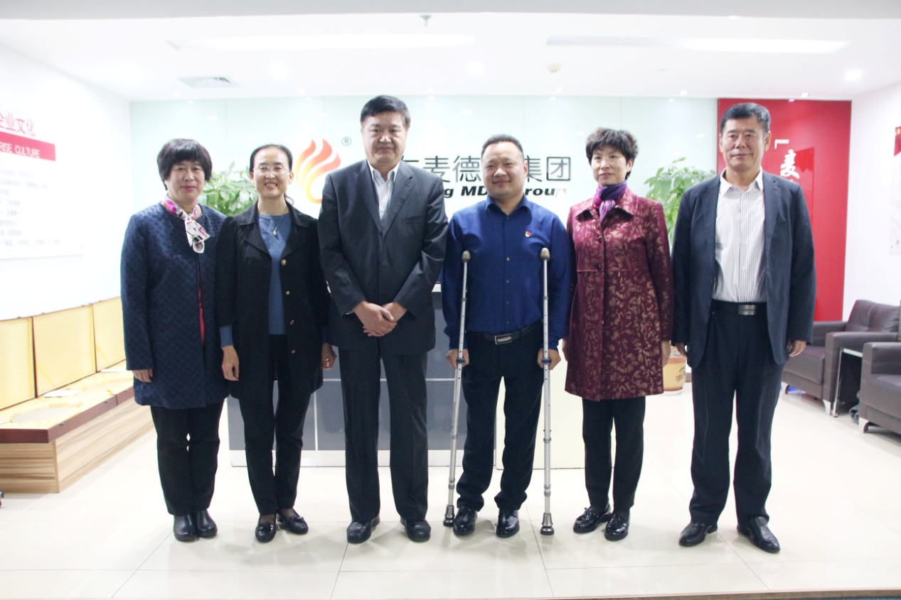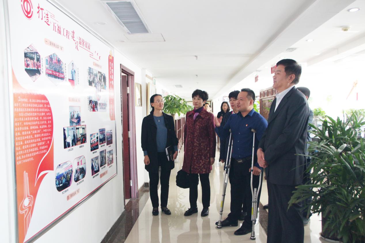 在宽敞明亮的大厅里,曹辛书记一行在王勇董事长的介绍下,依次对集团的企业文化、党支部建设、工会发展、残疾人文化长廊等情况进行视察了解,并对王勇董事长身残志坚的创业经历表示赞叹,对我集团“党建引领,中层实干,工会保障”的管理战略给予高度认可。他表示,希望公司继续在党的正确领导下,创新企业发展,积极回馈社会。