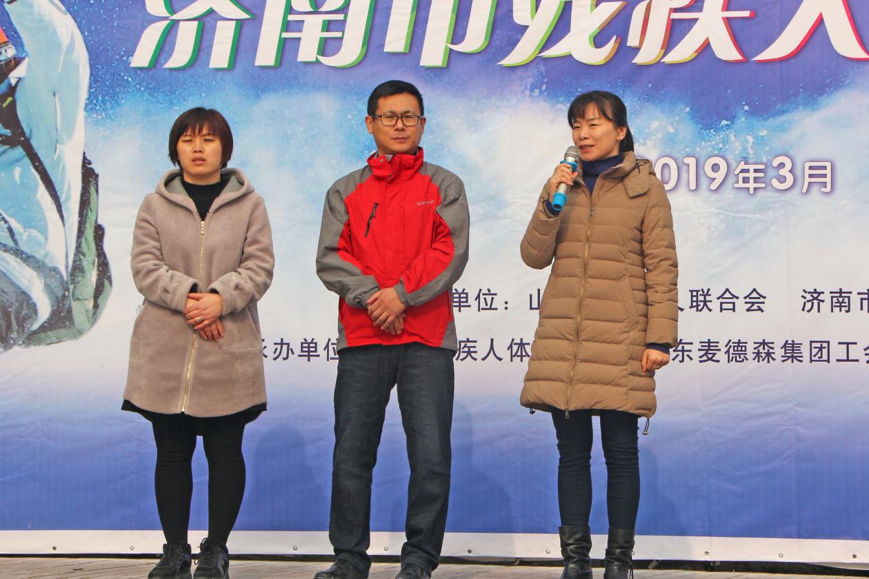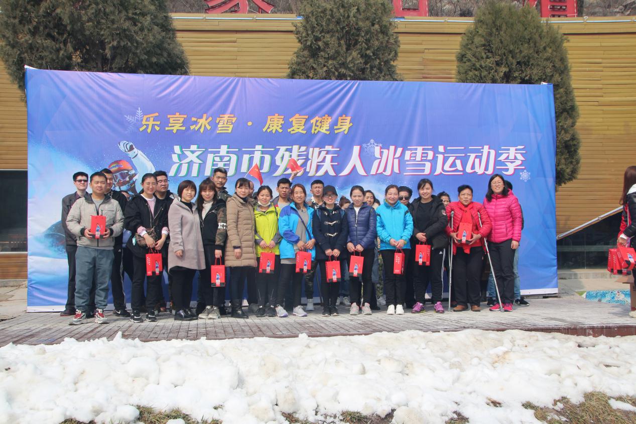 为深入贯彻落实党的十九大会议精神和中国残联七代会精神,动员更多残疾人加入到冬季体育康复健身运动当中,展示全面建成小康社会决胜阶段残疾人积极奋进的精神面貌,3月5日,由山东省残联、济南市残联主办,济南市残疾人体育协会及我集团承办的“乐享冰雪康复健身”残疾人冰雪季活动在金象山滑雪场圆满举行。济南市残联宣文处处长张敏,我集团总经理李校伟、工会主席张晶华等参加活动。