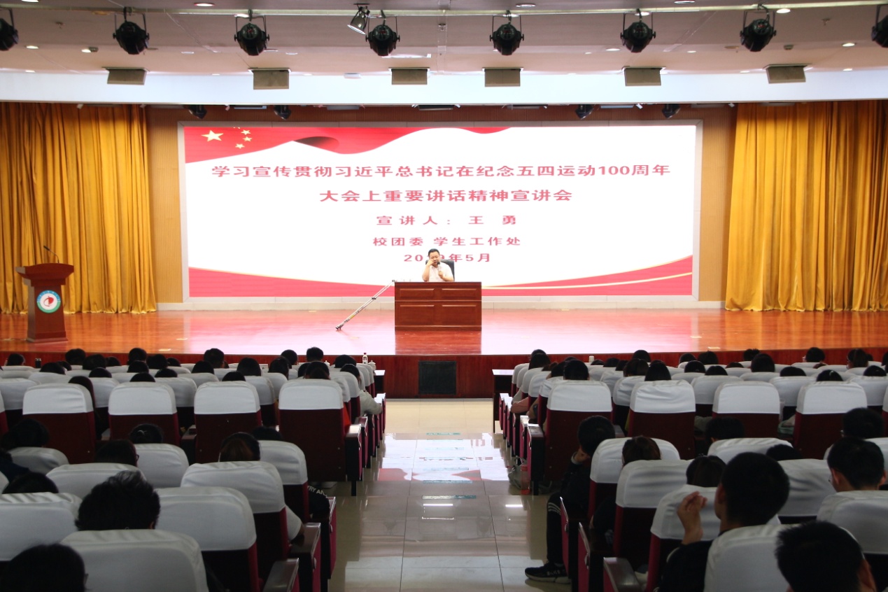 宣讲会上,王勇博士向现场师生传达了习近平总书记在纪念五四运动100周年大会上重要讲话精神,分享了自己求学和创业的奋斗历程和心得感悟,他表示,习近平总书记对广大青年有关爱、有信任、有指引、有重托,我们要主动学习习总书记对当代青年的寄语,用奋斗谱写青春之歌。