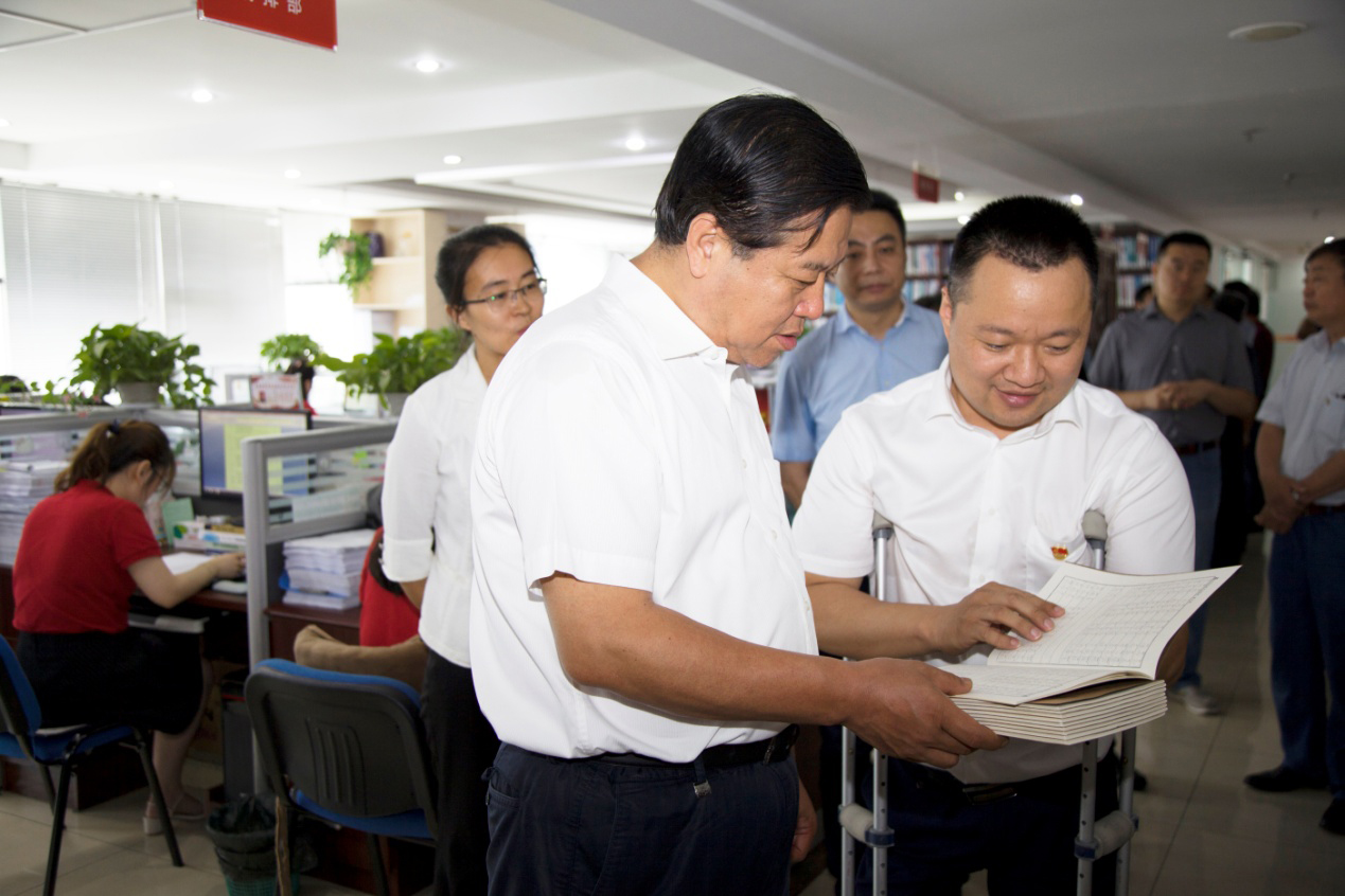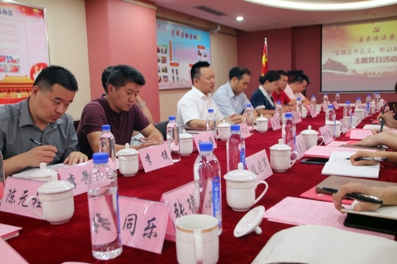 为全面贯彻落实习近平新时代中国特色社会主义思想,扎实开展“不忘初心、牢记使命”主题教育,6月27日,山东省委政法委办公室党支部全体党员来到我集团党支部,开展主题党日活动。山东省委常委、政法委书记林峰海出席活动并作重要指示。山东省委政法委办公室主任、党支部书记甘信忠主持活动。我集团党支部书记王勇博士参加活动并就自己求学创业的奋斗事迹做出详细汇报。