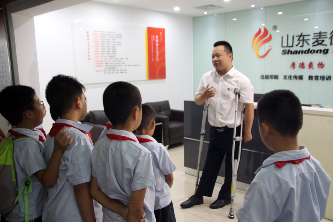 7月5日,济南市阳光100小学朝阳中队少先队员们来到我集团参观学习,集团党支部书记王勇博士陪同参观。