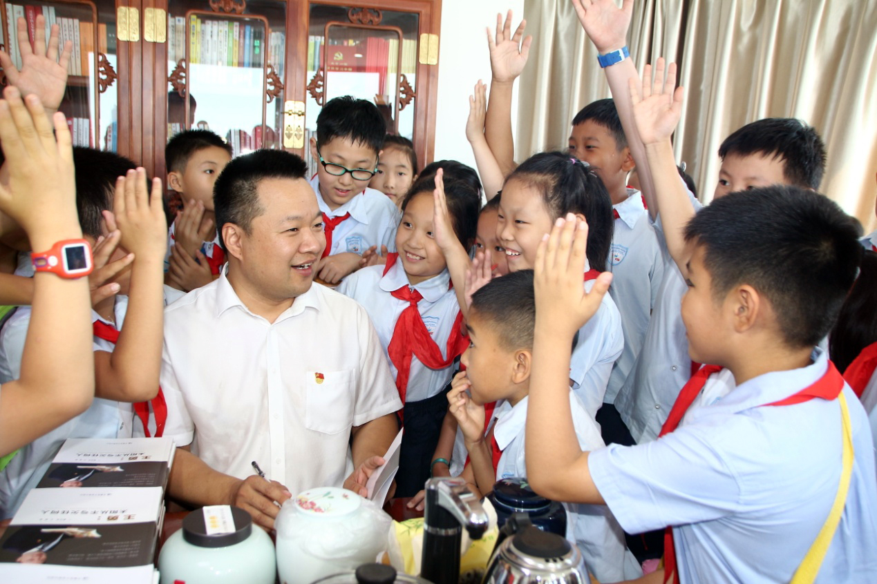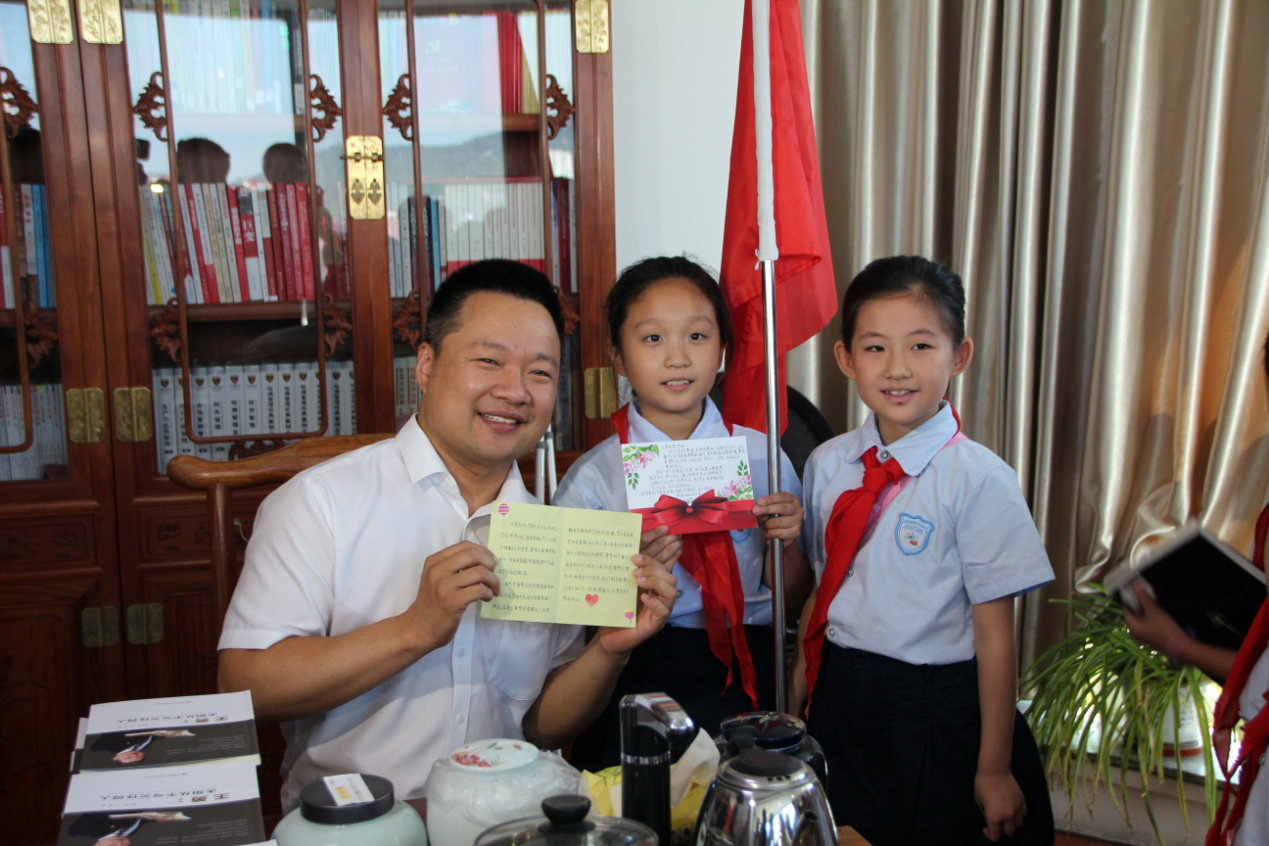 在党建活动室,少先队员们用洪亮而纯真的声音朗读他们亲手写给王勇叔叔的卡片,表达他们对王勇叔叔的敬佩。王勇博士被少先队员们的举动深深感动,他将自己的传记赠送给每一位少先队员,并在传记扉页写下“持之以恒”。王勇博士勉励大家,用“持之以恒”的态度去面对学习生活中的每一件事,大家努力奋斗,梦想定会照进现实。