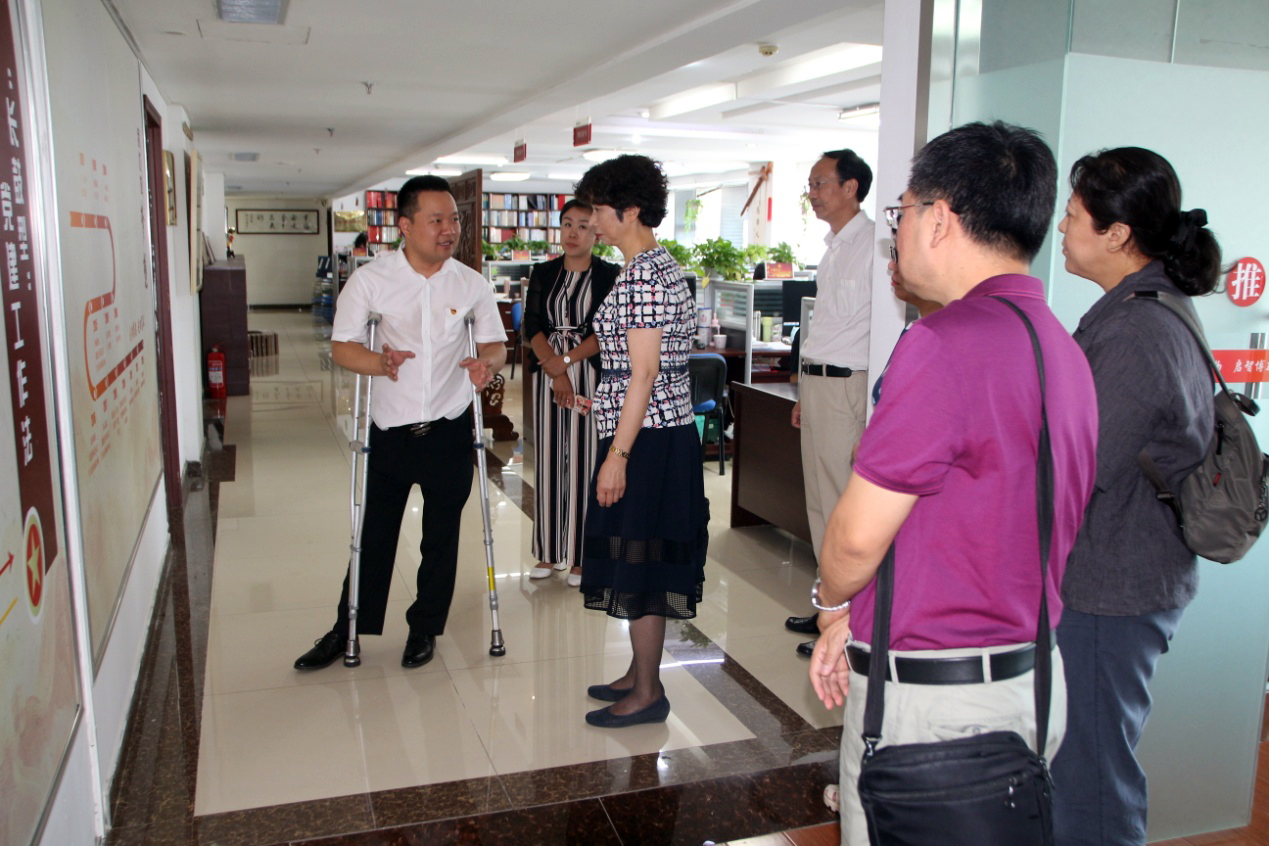 在王勇博士的陪同下,刘主席一行依次参观了集团党建活动室、企业文化墙、残疾人文化艺术长廊以及各业务职能部门办公区域。参观过程中,王勇博士向领导们详细介绍了集团企业文化、党员突击队建设以及“长鼓型”党建工作法,并就企业目前经营现状和未来发展方向向领导们作出汇报。