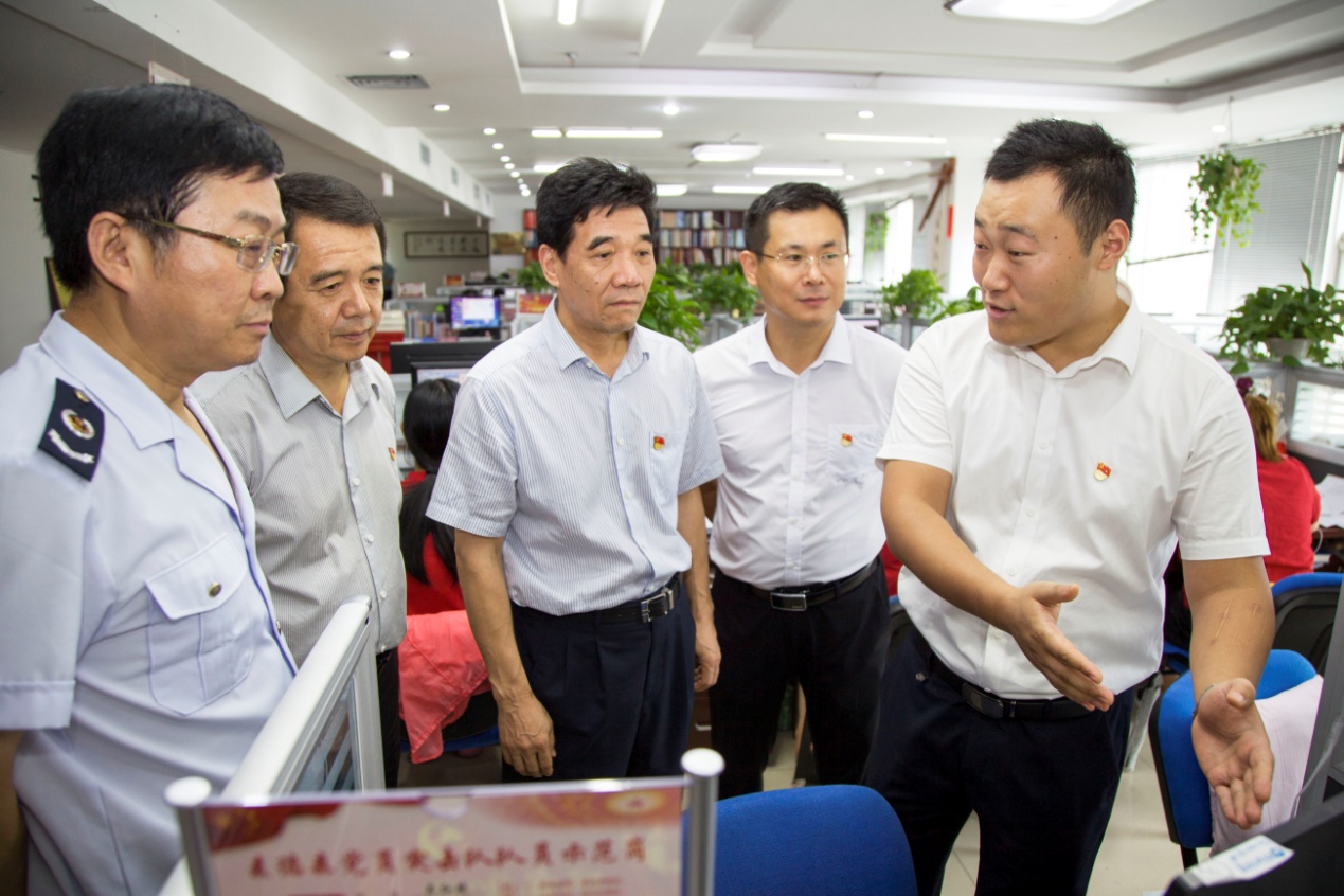 在李校伟等同志的陪同下,张吉茂副局长一行对集团党建宣传墙、企业荣誉展架以及各业务职能部门办公区域进行了参观,并在党建活动室认真查阅了集团党支部“三会一课”会议记录、党员手抄党章等企业党建。