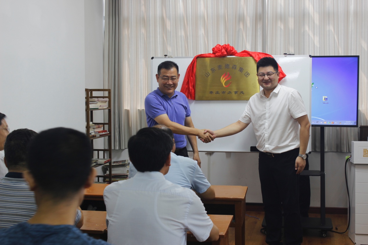 赵曰北会长与张永华总经理共同为“飞极速在线驻枣庄市办事处”揭牌。