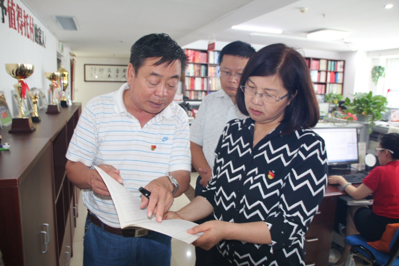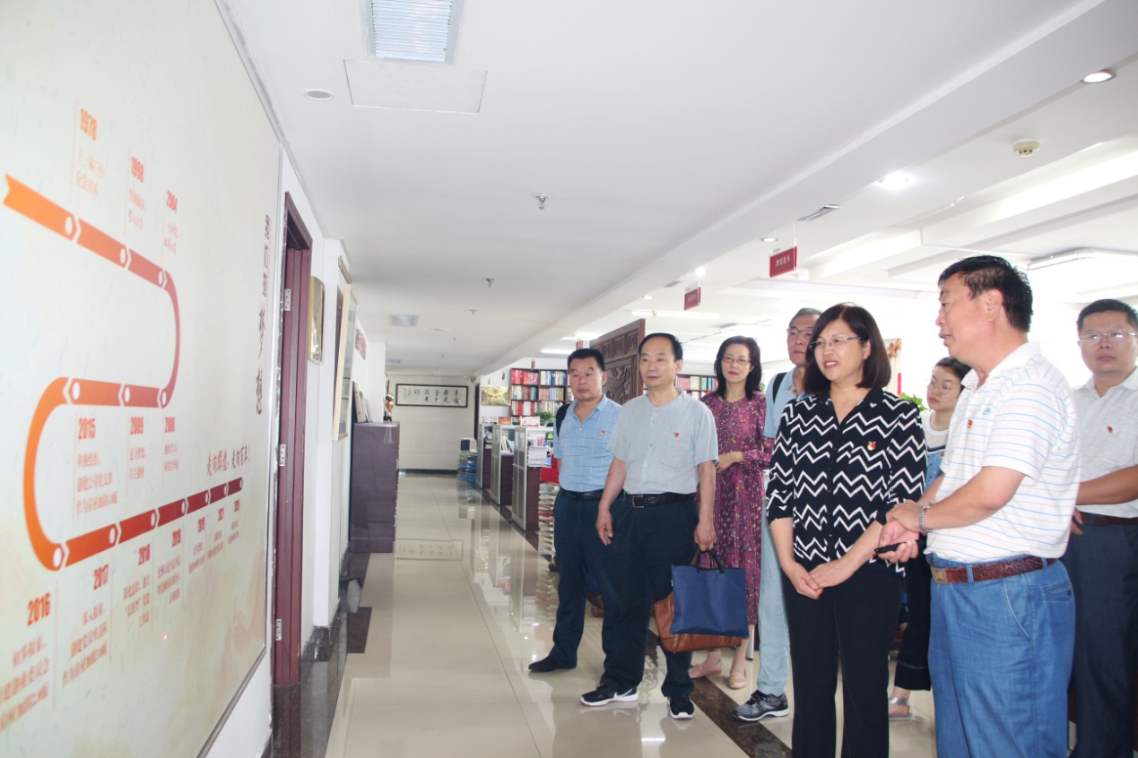 在桑守正等同志的全程解说下,王爱云院长一行对集团企业文化墙、党建宣传墙、企业荣誉展架以及各业务职能部门办公区域进行了参观。参观过程中,领导们翻阅查看了集团党支部“三会一课”会议记录、党员手抄党章等相关的党建材料和公司出版印刷的各类书籍,对我集团的党务工作和业务工作给予充分肯定。