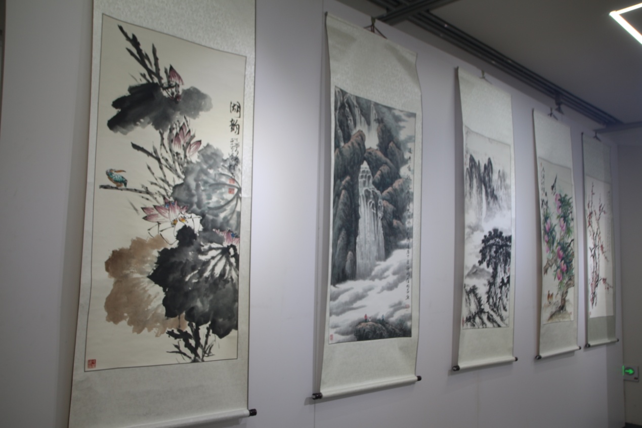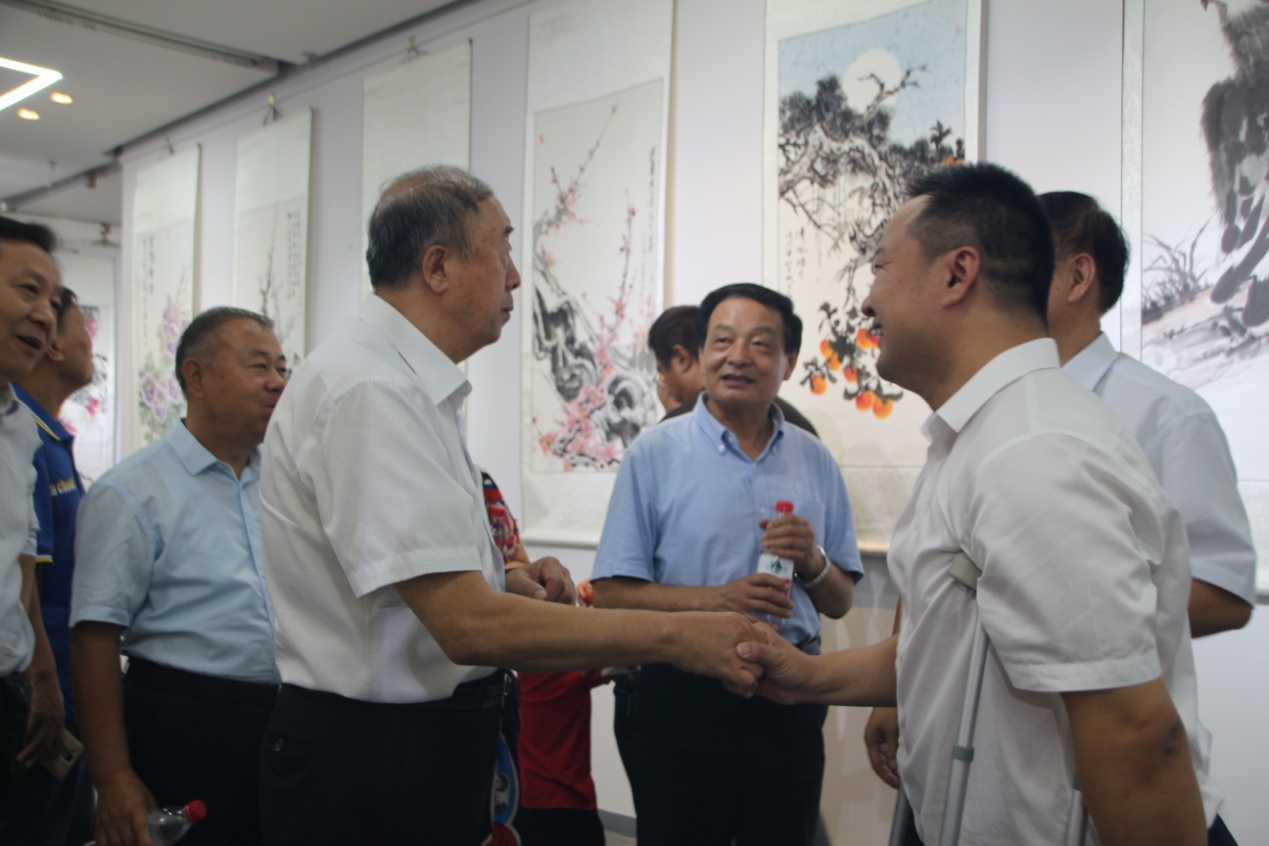 参观过程中,王勇博士带领各位领导来到残疾人书画作品展区,并向领导们逐一介绍残疾人兄弟姐妹的书画作品。