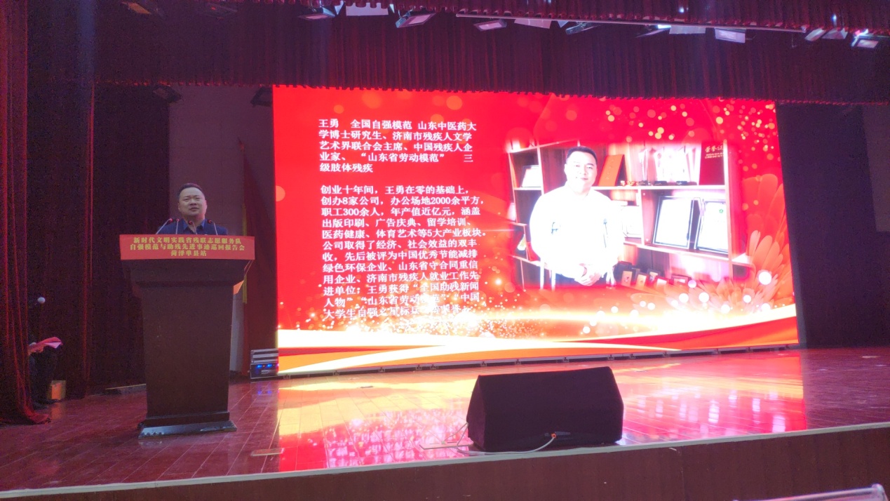 我集团党支部书记王勇博士作为“全国自强模范”代表参加了10月25日在山东特殊教育职业学院、10月28日在山东省菏泽市单县两场宣讲活动。