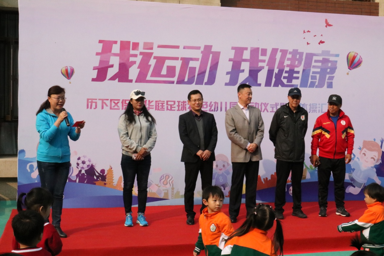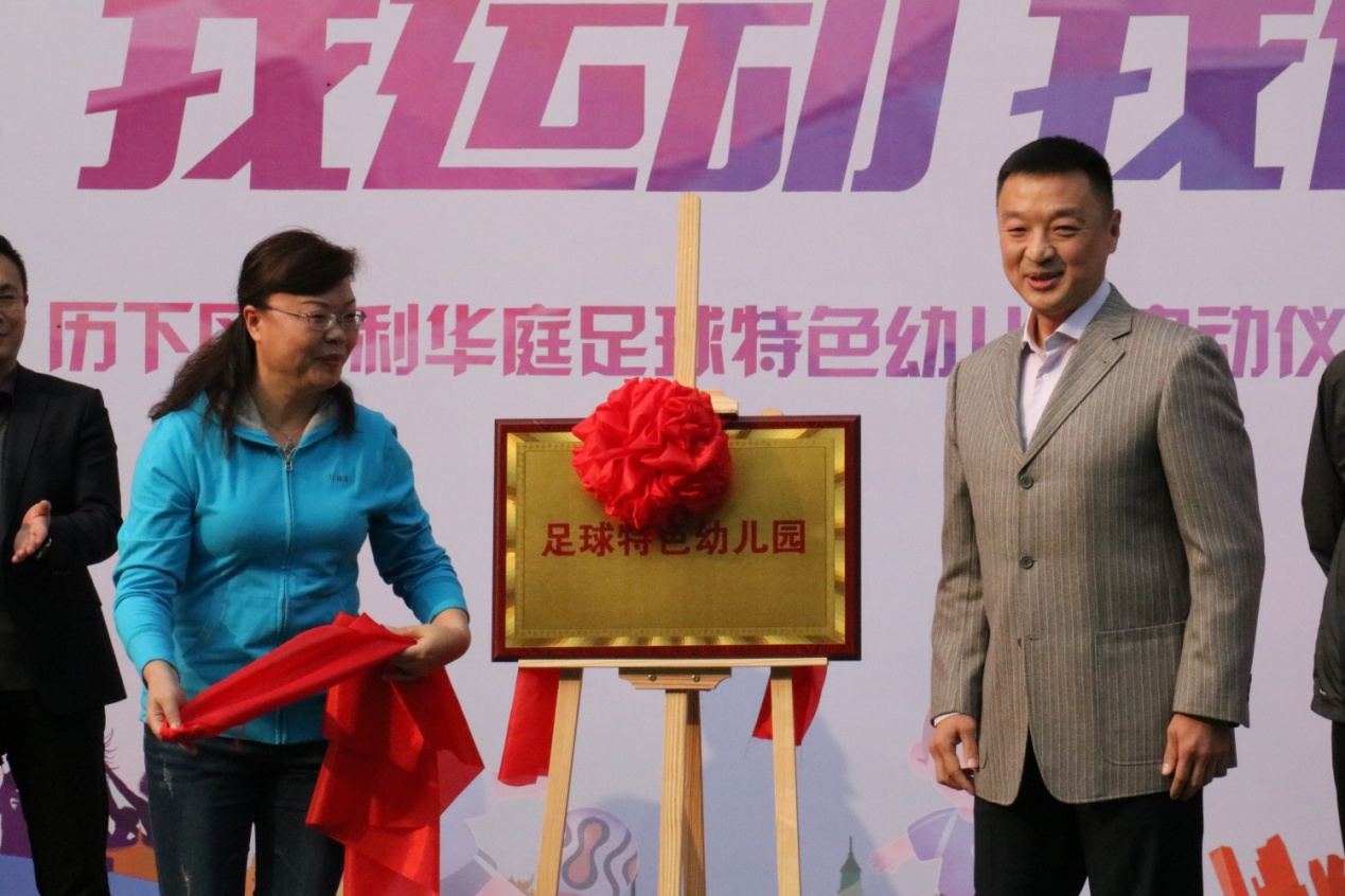 10月18日,历下区保利华庭幼儿园举行“足球特色幼儿园”揭牌仪式,历下区教育和体育局体育科科长崔巍,原山东鲁能泰山足球俱乐部功勋教练邹新光,原山东女足主力队员、中国女子足球裁判王露,我集团总经理李校伟等领导和嘉宾出席仪式。济南麦德森荣耀80足球俱乐部负责人、幼儿园百名老师、近千名幼儿参加了本次揭牌仪式。