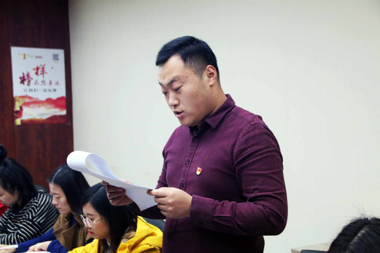 党支部组织委员张园园主持大会,按照预备党员转正程序,首先,转正申请人向大会汇报了自己预备期间的思想、学习、工作等方面的表现,表达了自己对党热爱与忠诚,并提出转正申请;预备党员培养介绍人向大会介绍了转正申请人在预备期的培养考察情况,全体党员讨论发表意见。