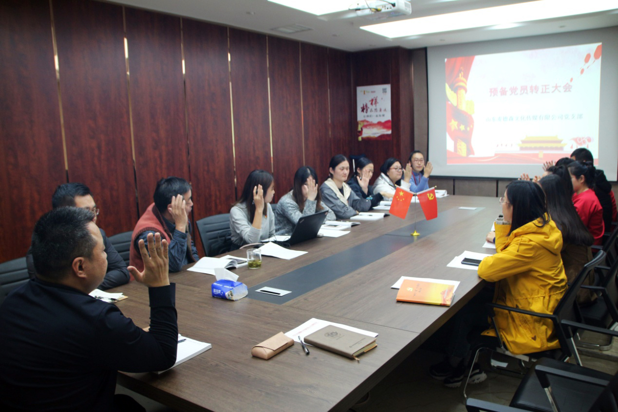 党支部书记王勇博士对两位同志顺利转正表示祝贺,他指出,此次预备党员转正是集团党支部成立以来第一次纳新,支部建设工作在“党建引领企业发展、党建发现培养人才”的发展找略指导下日趋完善。他勉励大家,牢记党员的先锋模范作用,以自己的行为竖起标杆,在各自的工作岗位上担责奋进。