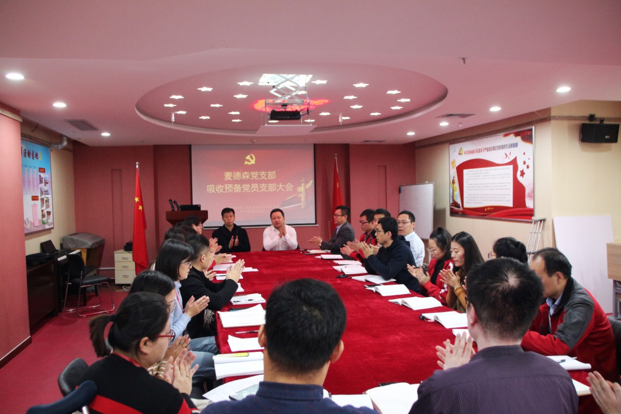 党支部组织委员张园园主持大会,按照党支部吸收预备党员程序,首先,党员发展对象张珊珊、刘海盟、杨艳春依次汇报了自己学习期间的思想、学习、工作等方面的表现,表达了自己对党的热爱与忠诚,接受党组织考验的意愿,并提出希望被吸收为预备党员的申请;三位党员发展对象的培养人分别介绍了他们的情况,并提出各自的意见;同时,与会党员代表分别发表各自的意见。