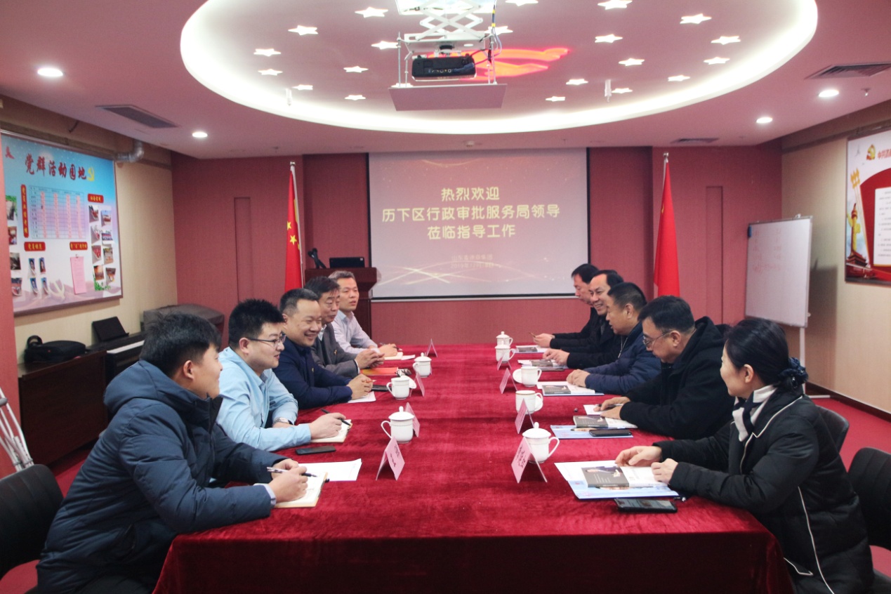 12月18日,历下区行政审批服务局局长、党组书记王静等领导一行莅临我集团调研指导工作,并召开座谈会。集团党支部书记王勇博士等陪同调研。